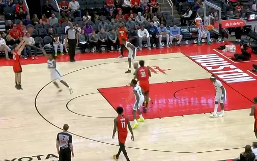 比赛的第三节,谢泼德下半场开局连中两记三分已得16分,火箭领先27分。